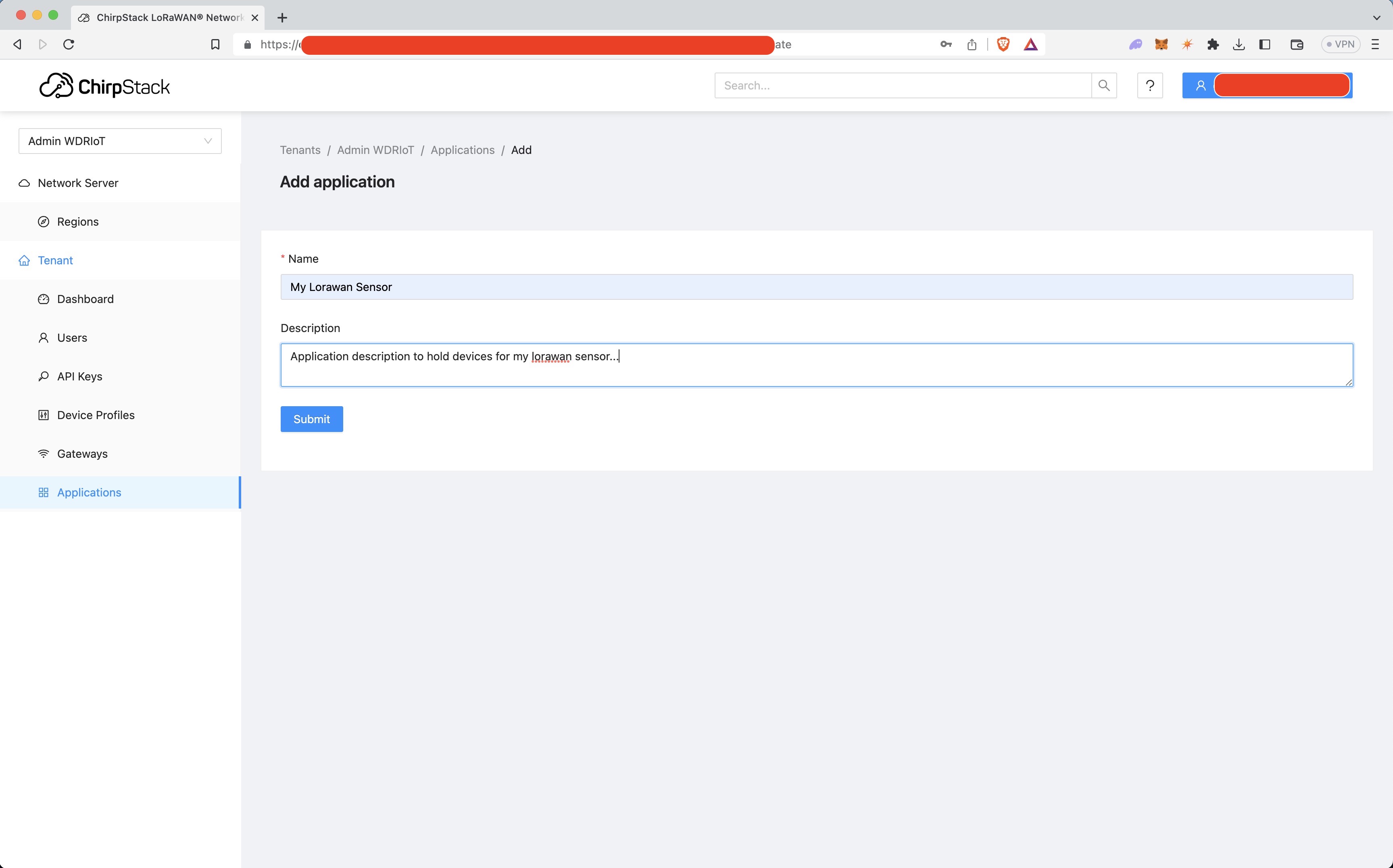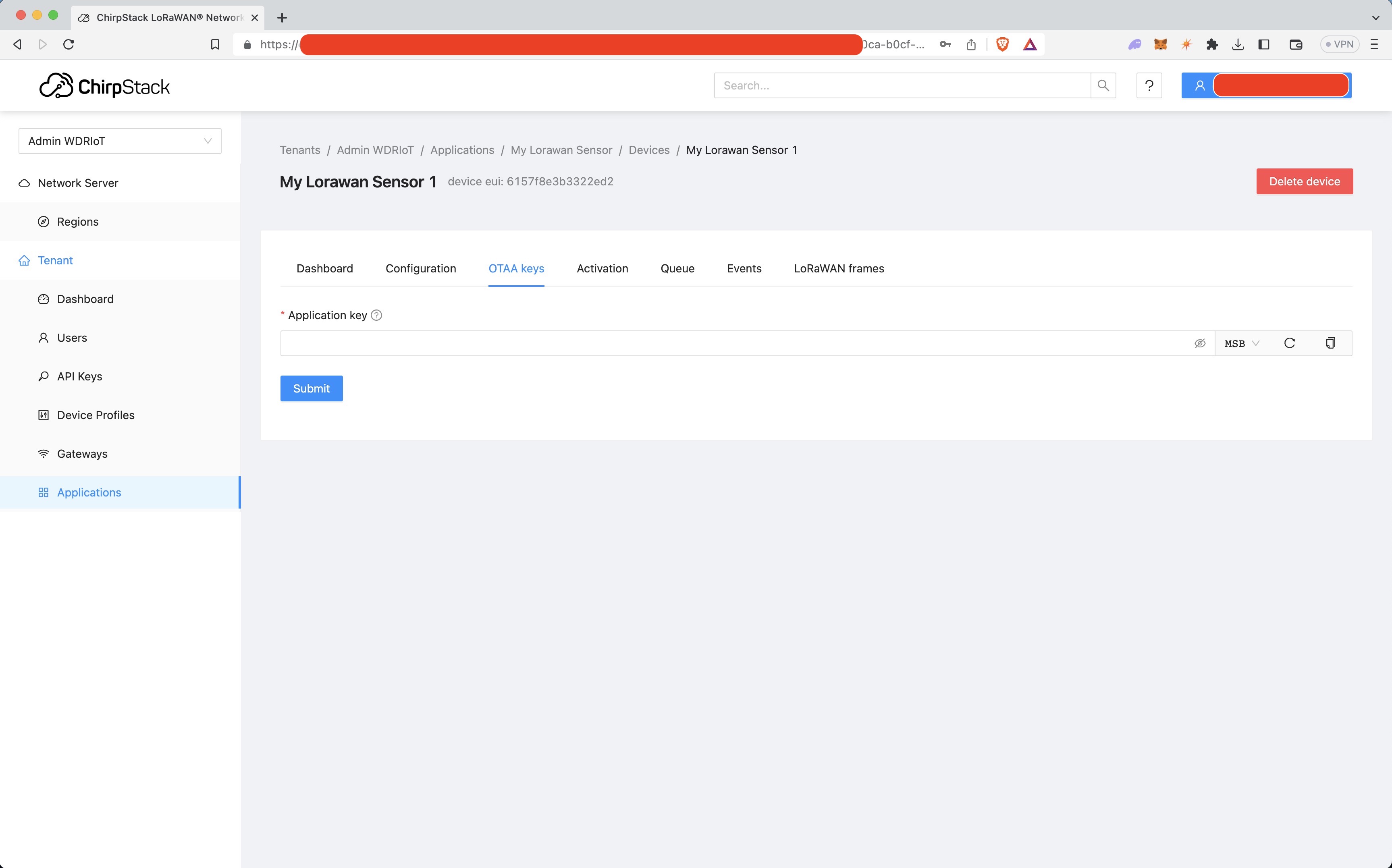 Click Submit once you enter the application key.