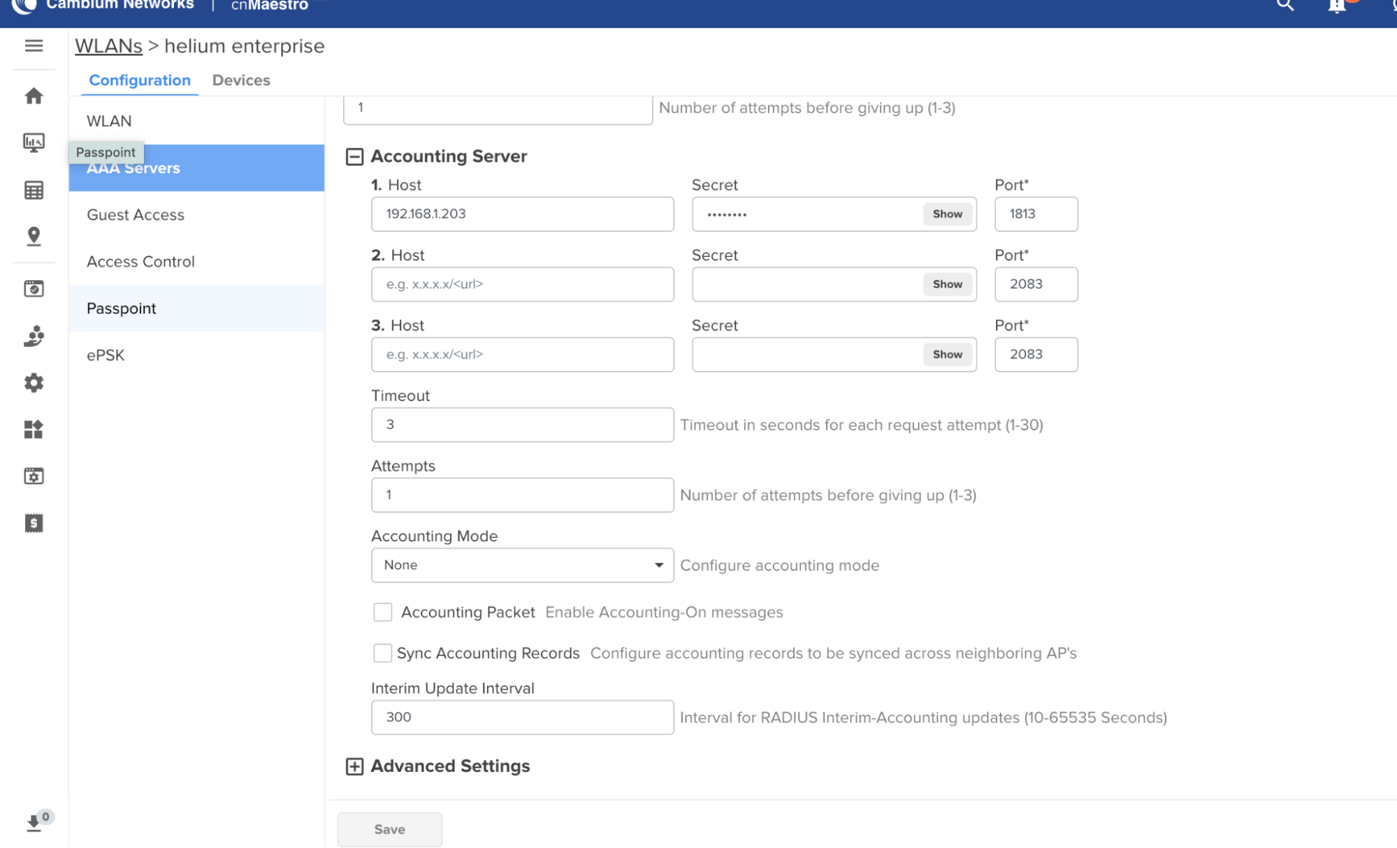 Under Accounting Server, repeat the steps above but set Port = 1813.