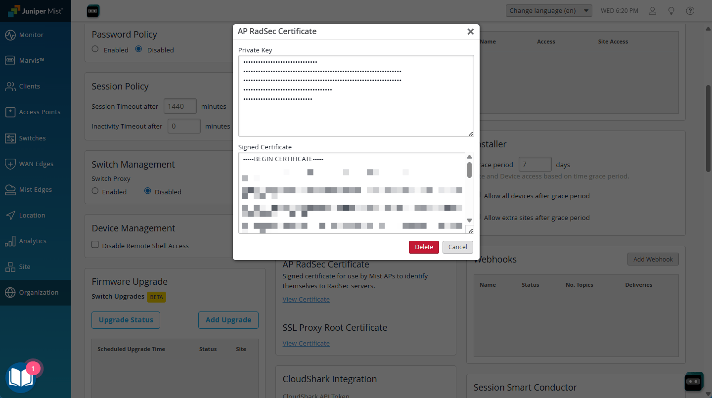 - Under AP RadSec Certificate, click the View Certificate link.