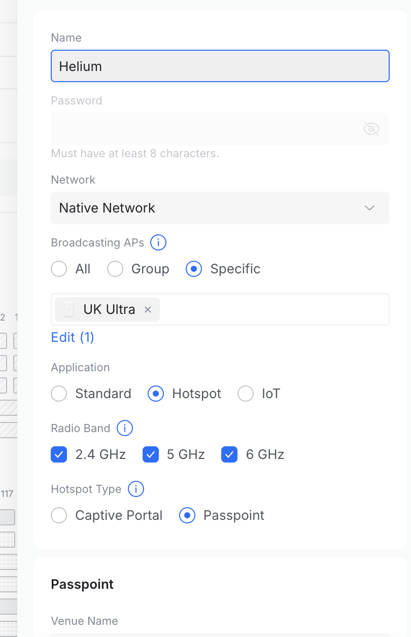 Passpoint. Passpoint settings will appear below. - Specify Venue Name to a name for your site.